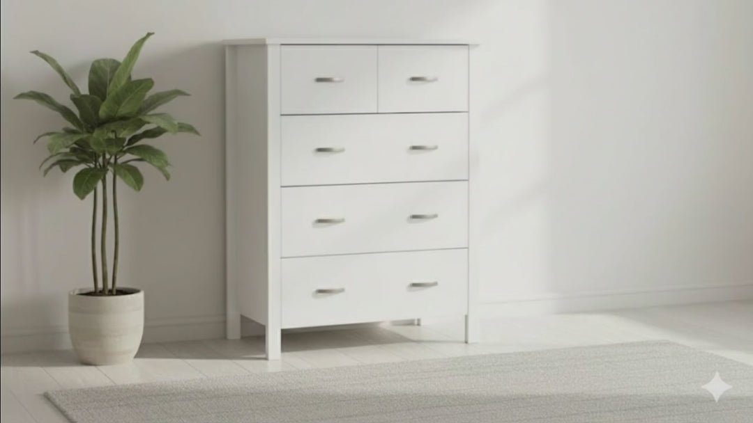 The Medallion 5 Drw Tallboy in crisp White finish is a versatile storage solution for any room. With five spacious drawers, it offers ample space to neatly organize your belongings. The elegant medallion design adds a touch of sophistication to your decor. Made from durable materials, this tallboy is built to last.