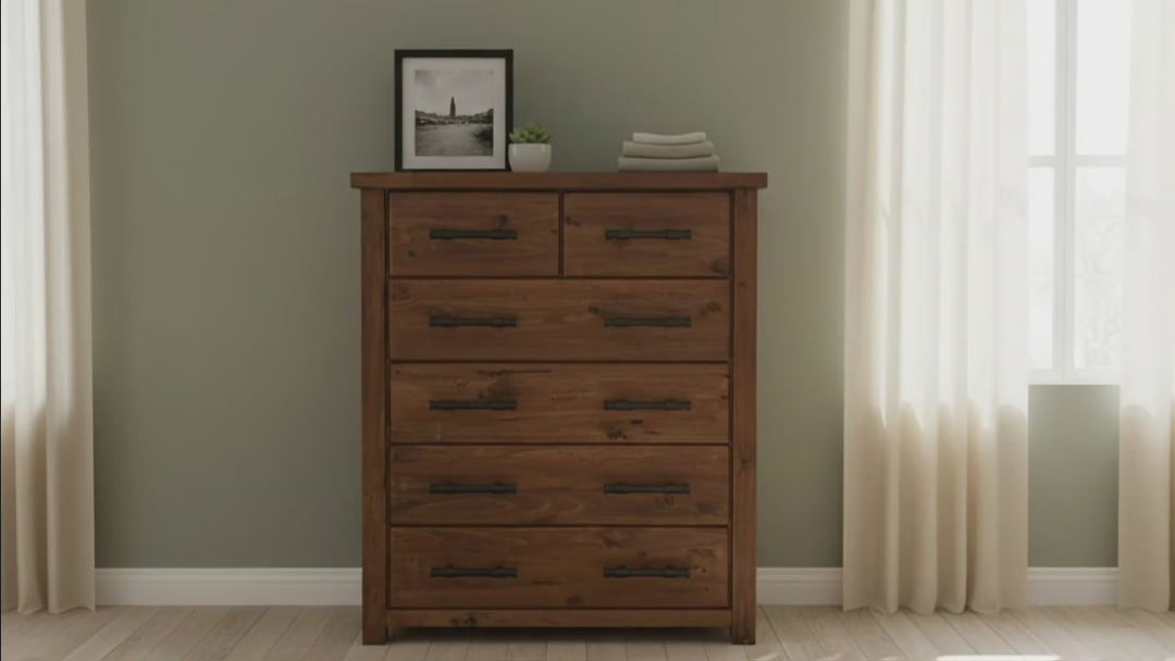 Oakwood 6 Drw Tallboy showcases the beauty of oakwood with its exquisite design and impeccable craftsmanship. With six spacious drawers, it offers ample storage for all your essentials.